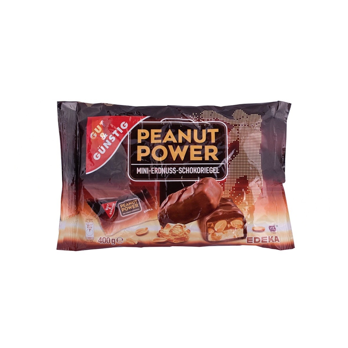 Batony G&G Peanut Power opierają się na intensywnym połączeniu mlecznej czekolady, ciągnącego się karmelu oraz wyraźnie wyczuwalnych orzeszków ziemnych. Struktura batonów jest zróżnicowana – miękkie warstwy przełamane są chrupkością orzechów, co nadaje całości wyrazisty charakter.